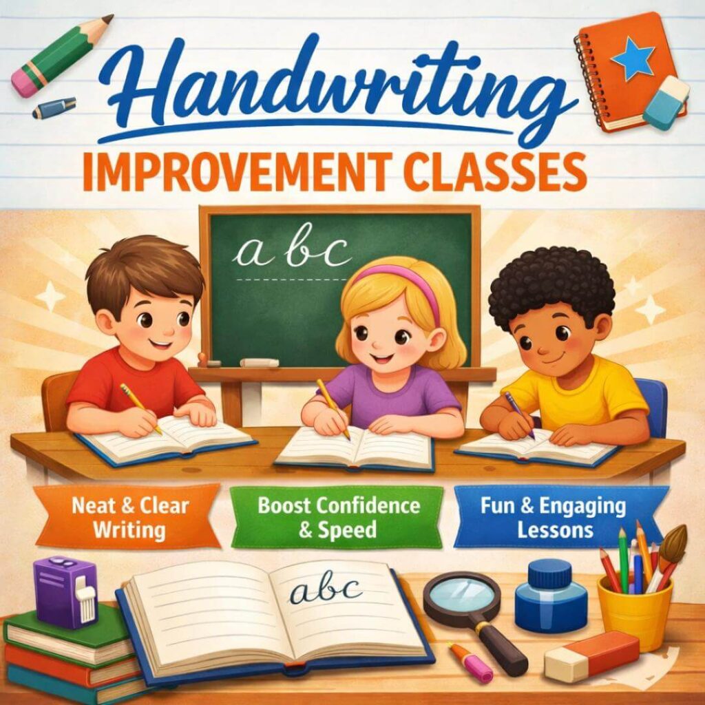Our Handwriting Improvement Program is specially designed to help children develop neat, legible, and confident writing skills step by step. Through proper guidance, practice techniques, and expert support, children learn correct letter formation, spacing, and writing flow. This program not only improves handwriting but also boosts concentration, discipline, and overall learning ability.